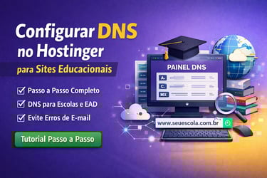 Aprenda como configurar DNS no Hostinger para sites educacionais de forma simples e segura. Guia passo a passo para escolas, cursos online e projetos educacionais evitarem erros de acesso, e-mails fora do ar e problemas de hospedagem.