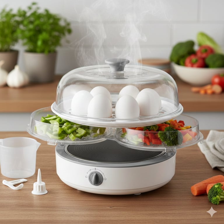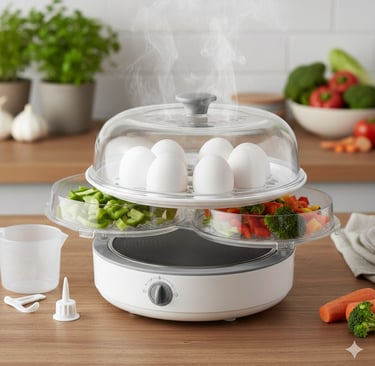 O Cozedor Elétrico Egg Cooker é ideal para sua cozinha! Cozinha até 7 ovos no ponto que você quiser (mole, macio ou duro). É rápido, prático e fácil de usar — é só colocar água e ligar! Prepara também legumes e salsichas no vapor, economiza tempo e espaço e facilita sua rotina!