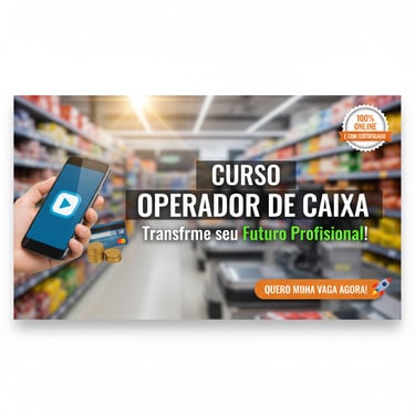Quer conquistar sua vaga de Operador de Caixa rápido? Domine a função, destaque-se na entrevista e saia na frente da concorrência. Curso prático, certificado e 100% online. Não perca tempo, comece agora e garanta sua independência financeira!