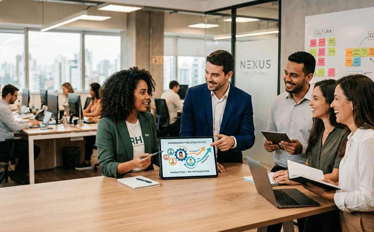 Descubra como o Endomarketing une Marketing e RH para transformar colaboradores em diferenciais competitivos. Aprenda a aplicar os 4 Ps no público interno, melhorar a comunicação e aumentar a produtividade com estratégias reais e cases de sucesso. Confira o guia completo para sua empresa!